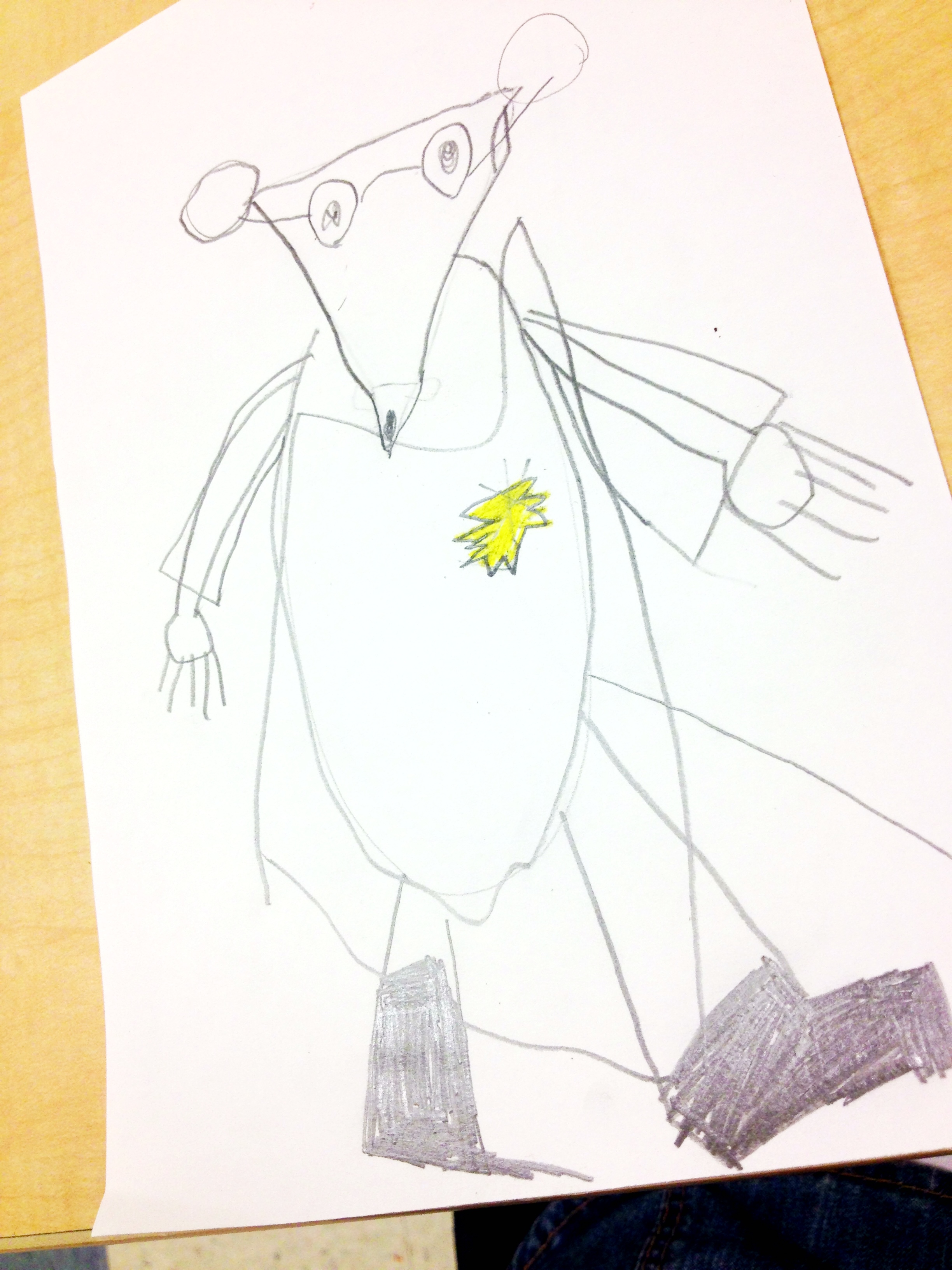 We read the book, Look! Look! Look! by Nancy Elizabeth Wallace. After showing students step by step how to draw a cartoon mouse (and explaining it was ok if their mouse looked different from their neighbors) in pencil, they outlined them in sharpie and finally added watercolor. I dread the cookie-cutter, pinterest-y perfect art project. To avoid this I let students add any accessories – clothes, glasses, fur, food, etc. to their mouse. They also chose their own colors.